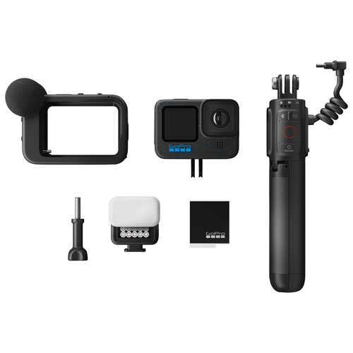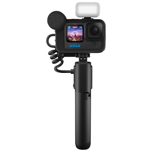 Unleash your creativity with the GoPro HERO12 Black sports and helmet camera. This rugged, waterproof camera captures 5.3k video and 27MP still images with realistic details, with up to five hours of continuous shooting potential. The Creator Edition includes mounts and accessories to expand your creative possibilities.