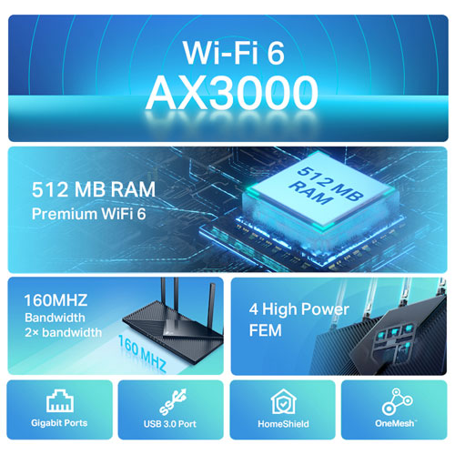 - Wi-Fi 6 (802.11ax) enabled router with speeds up to 3000 Mbps ensures smooth and fast connectivity for all your devices